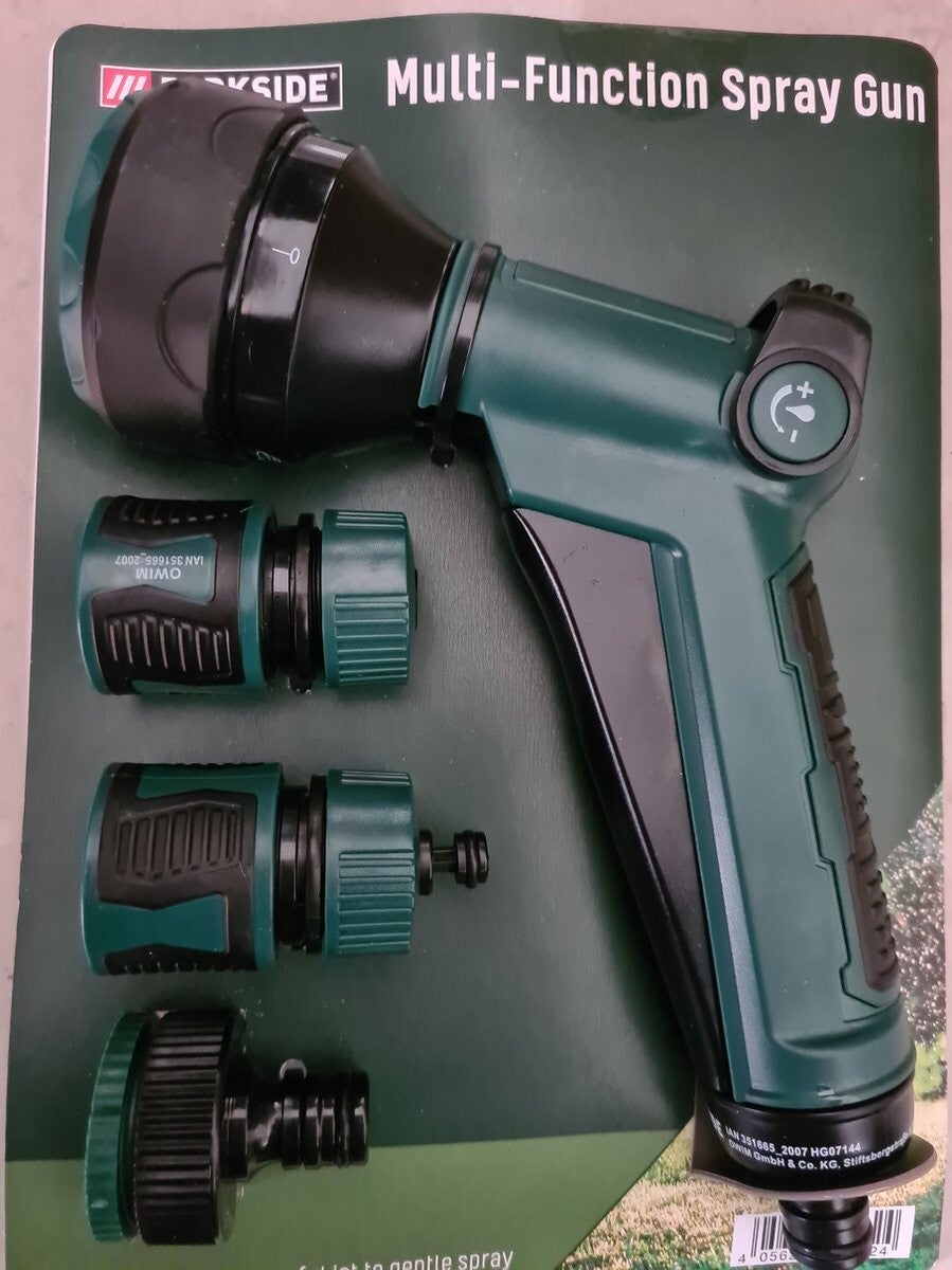 bediening met één hand voor traploos regeling van het watervolume. Ergonomische softgrip met tegen stoten beschermde sproeikop geschikt voor 13 mm tuinslangen 1/2''