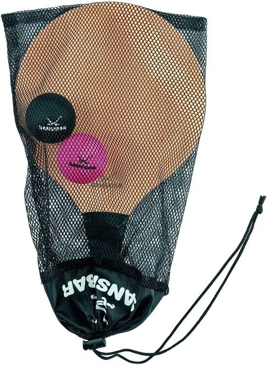 - Set bestaande uit twee rackets en twee rubberen ballen