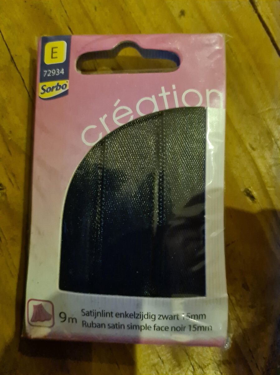 Sorbo Satijnlint - Enkelzijdig - Zwart - 9m - 15mm